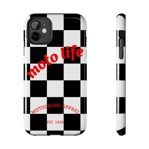 Copy of moto life checkered design Phone Case | motocross apparel, black white grid